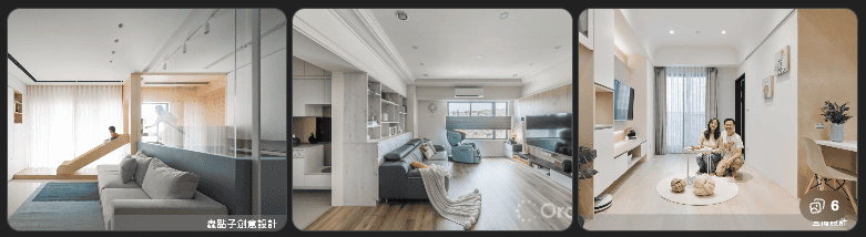有報導指出,一個約 19 坪、帶孩子的親子家庭採「去客廳化」策略:把客廳轉為多功能活動平台,捨棄傳統沙發配置,下方整合大量收納,牆面減少實體隔間,以提升空間開放感與孩子可動範圍。(設計家 Searchome) 另一在 22 坪的親子宅中,沒有設置電視牆與大型沙發,把公共空間設計為全家共享的活動區與學習平台。