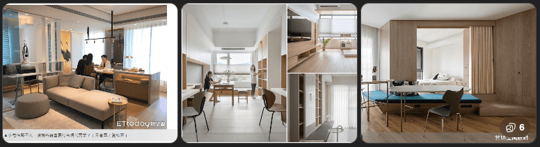 - 空間概況:雖未特定屋主資料,但報導指出「不到20 坪的微型住宅也能擁有舒適寬敞格局」,像17坪案例將櫃體當作牆體+活動家具設計,突破傳統客廳自有區域。 (設計家 Searchome)