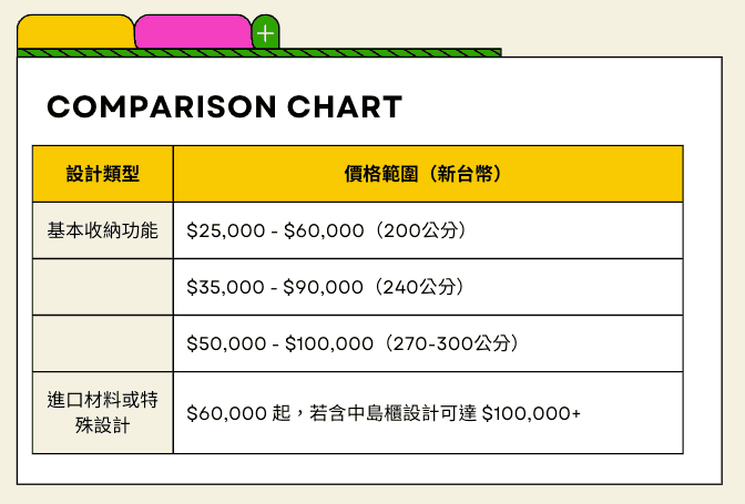 - 價格範圍:$60,000起,若包含中島櫃等設計,則可能達到$100,000以上。