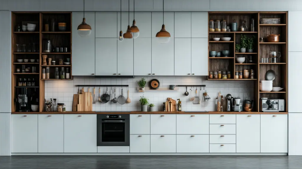 - 上方吊櫃:用於儲存碗盤及乾貨,增加儲物量。