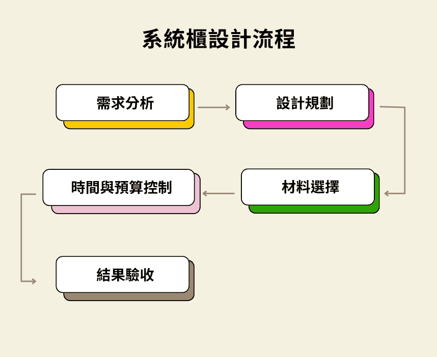 購買系統櫃時應根據客戶的需求和空間進行選擇。需要考慮的因素包括材質、設計風格、尺寸、功能需求以及價格與預算。選擇專業設計公司可以確保品質穩定,並提供完整的安裝指導與售後服務。