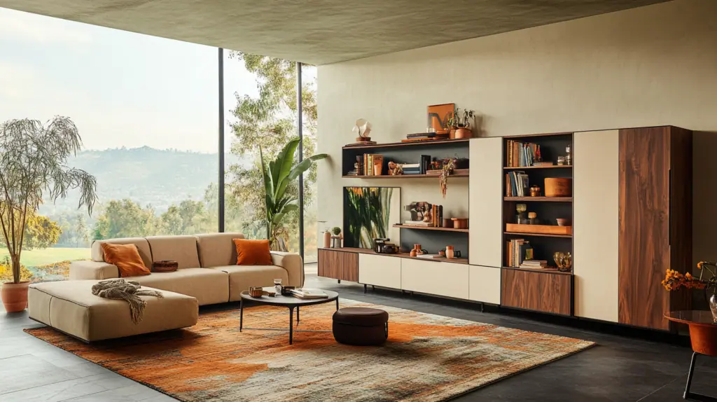 隱藏式儲存和智能化設計是2025年的重要趨勢。系統櫃可以整合隱藏式儲存空間,如拉出式儲物櫃和電器車庫,保持整體空間的整潔和簡潔。