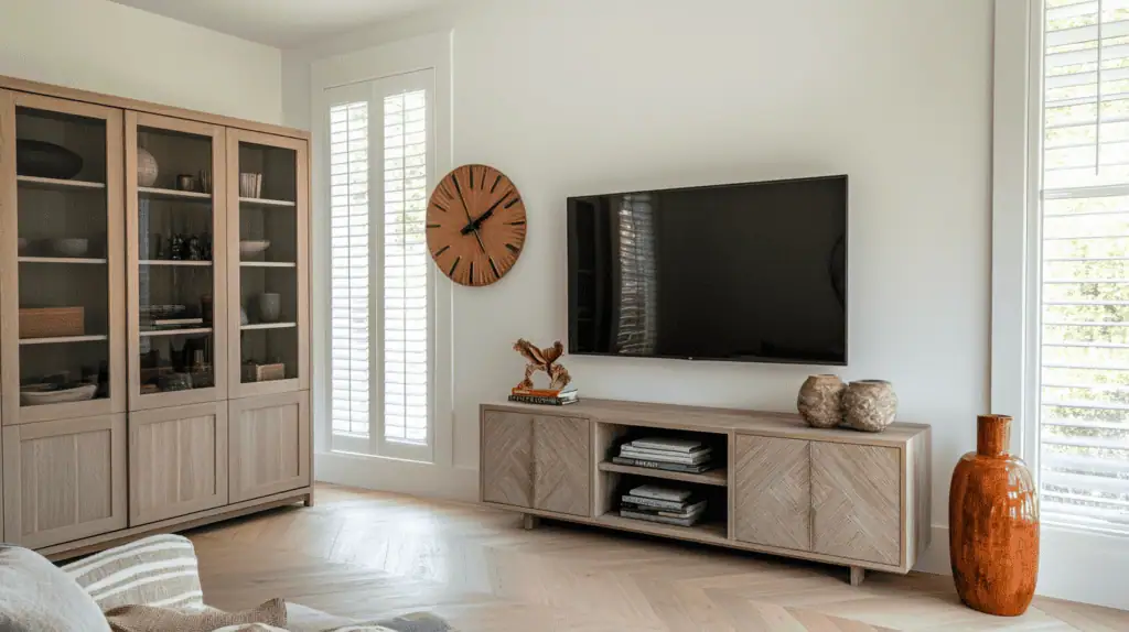 成品電視櫃大概從 NT$6,000 起跳,而系統櫃或客製設計可以一路飆到 NT$50,000 以上。不一定要選最貴的,但要懂得分辨價差來源:板材材質、門片五金、收納配置、收線設計……這些看起來細節,卻決定了你日後使用的舒適度。
